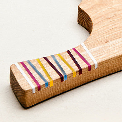 Materials: white or native ash with acrylic inlays. 'Finished in oil which is food safe.