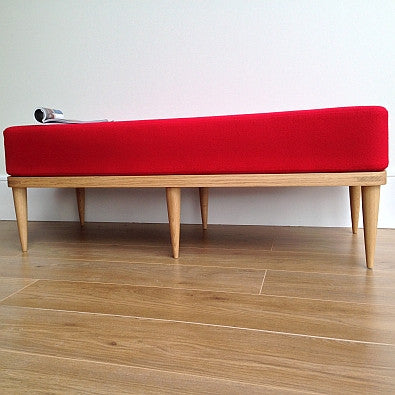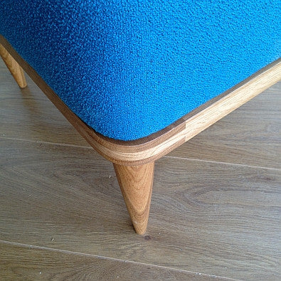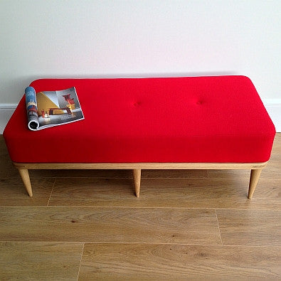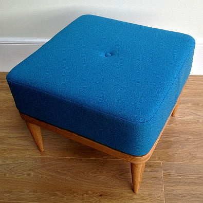 Doris is a glamorous vintage inspired footstool/bench upholstered in ‘Monroe’ a stylish bobbled effect woollen fabric available in an amazing range of retro inspired colours from Camira Fabrics. Please contact us for free fabric samples.